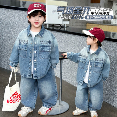 豆贝豆&粉色花朵牛仔套装