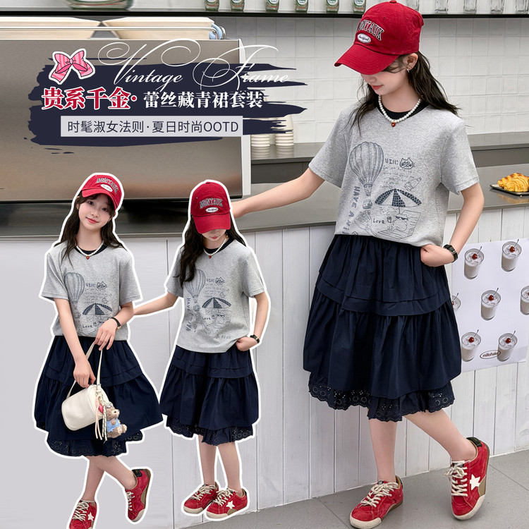 南瓜街&829款爱心亮片绣裙裤套装