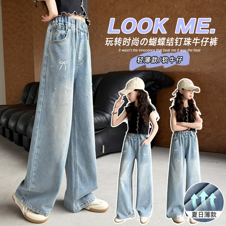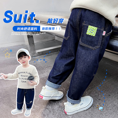 佩奇王国&男童-213款-净色绿笑脸牛仔裤