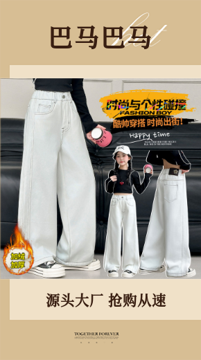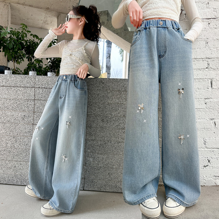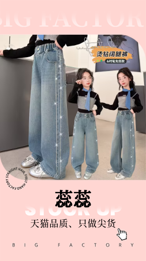 蕊蕊&R1168款侧边印花烫钻牛仔裤