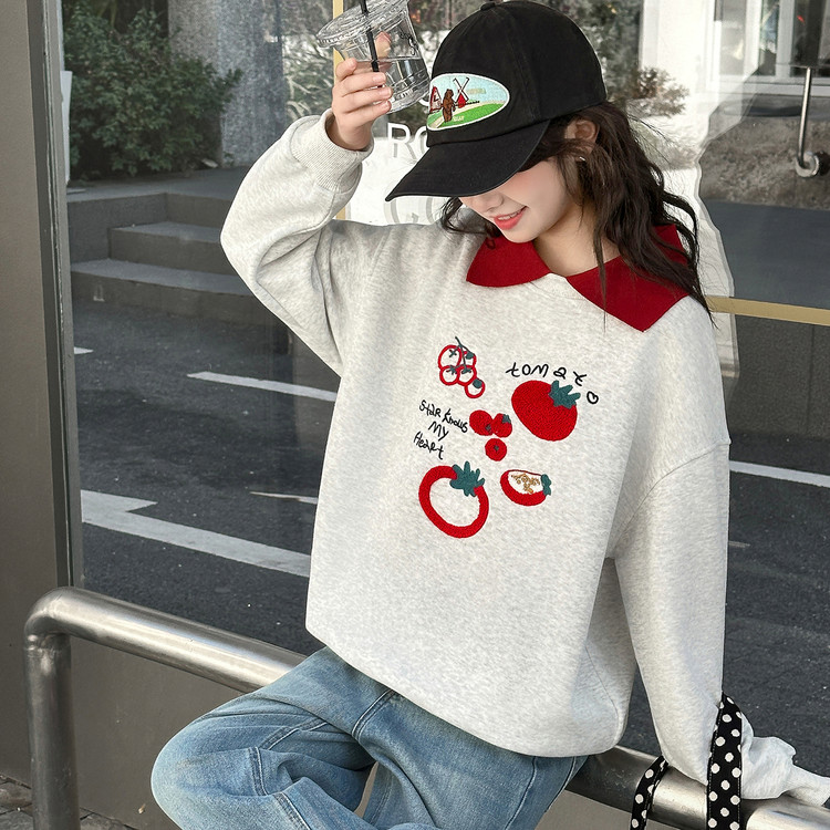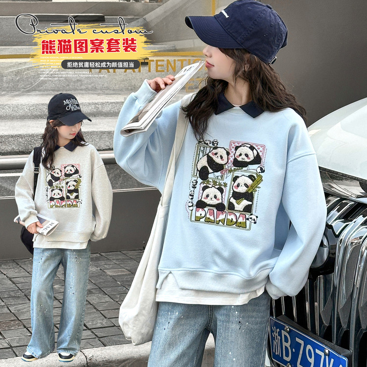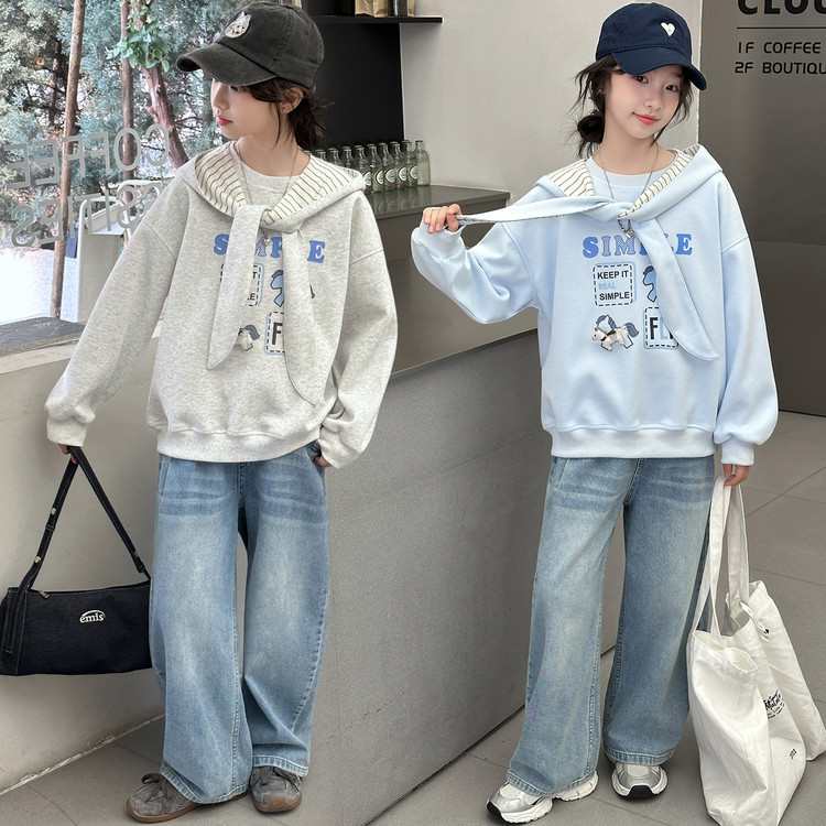 萱尚潮童&F018款烫瓷蝴蝶结花边卫衣
