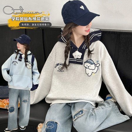 蓝月亮&2611款爱心刺绣连帽假两件套装
