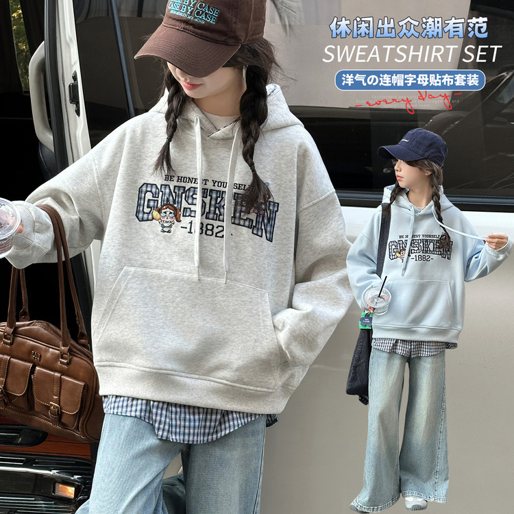 蕊蕊&R187款印花连帽开衫卫衣套装
