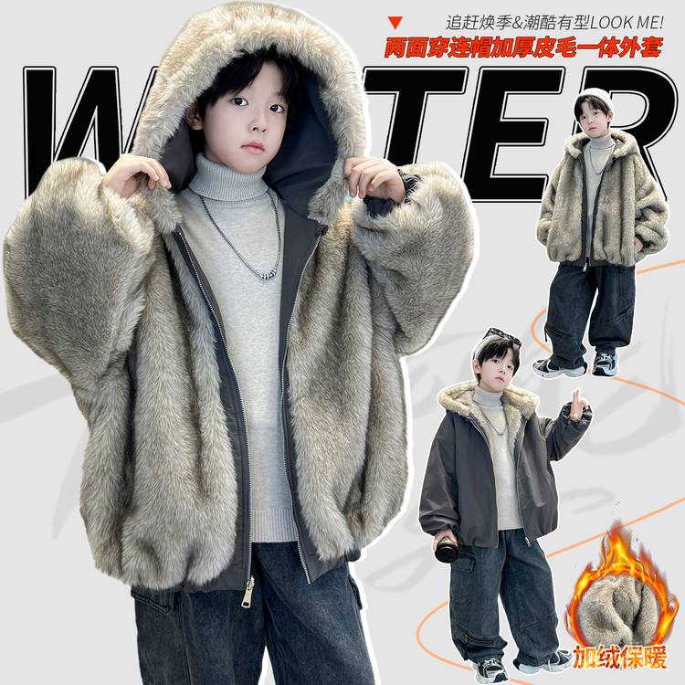 爆版熊&B57-两面穿连帽加厚皮毛一体外套