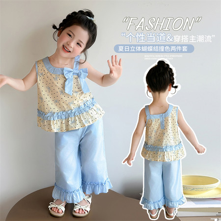 孩在&波点裤套装