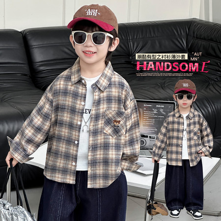 小孩潮品男童店&26020口袋小熊格子衬衫