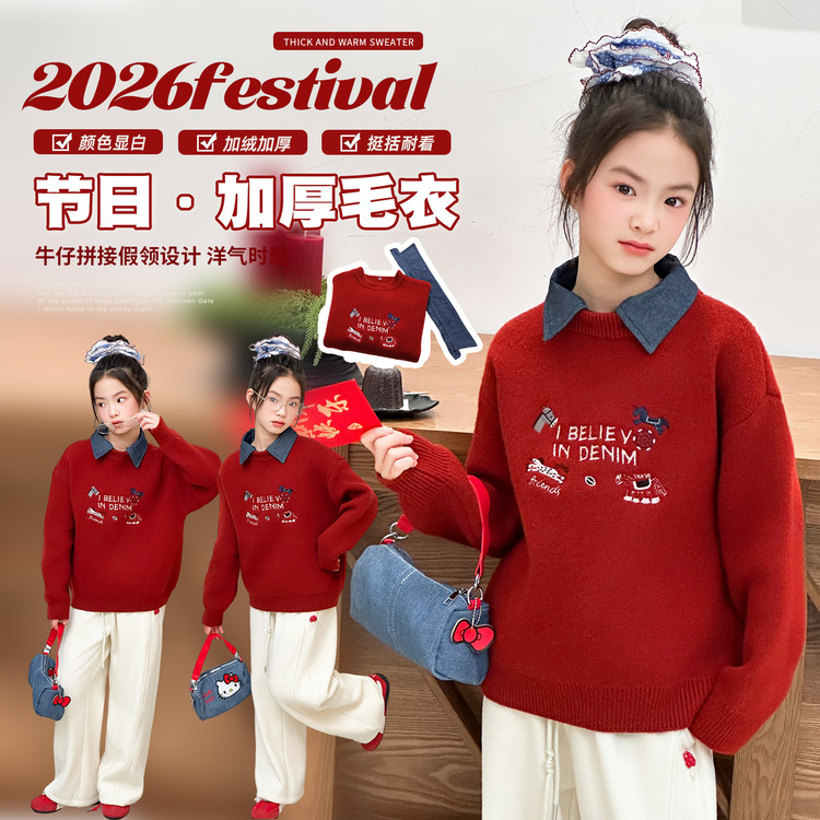 艾佳贝【原颖火虫童装】&2601款假两件卫衣套装