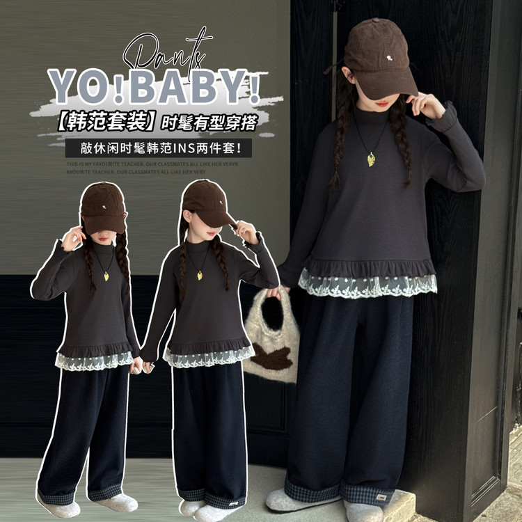 蕊蕊&R195款花边拉条蝴蝶结衬衣百褶裙套装