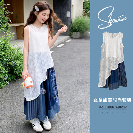 萌小星&开叉背心格子裤套装