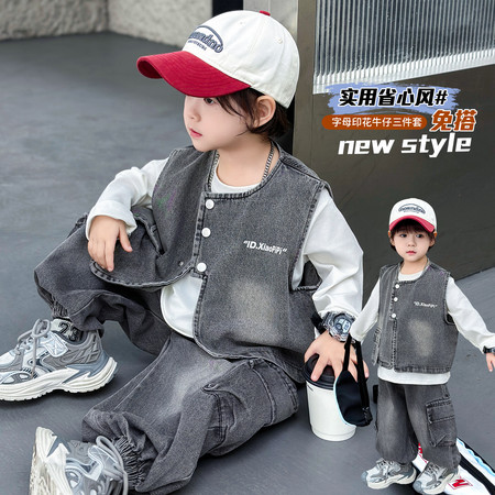 海王星&391字母印花牛仔三件套