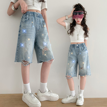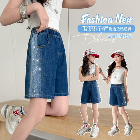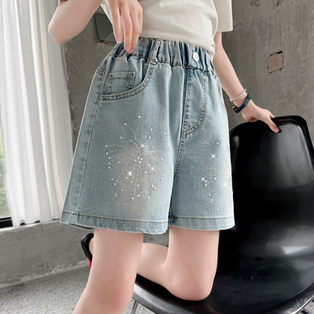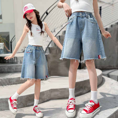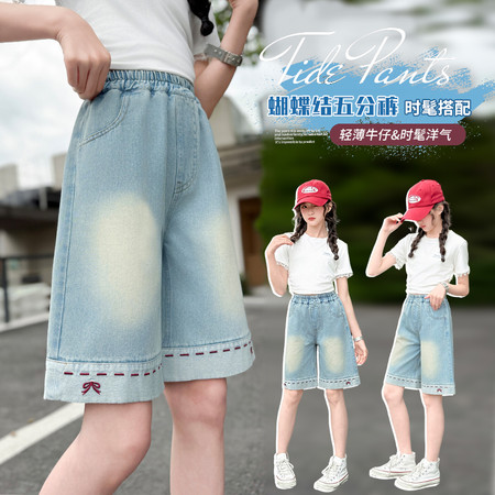 【爆款爱心字母短裤,现货供应,品质软牛仔】女童牛仔短裤热裤