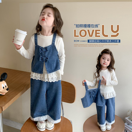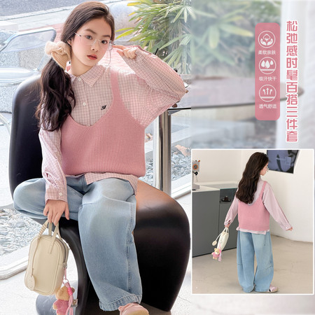 俏巴兔&027衬衫牛仔裙两件套