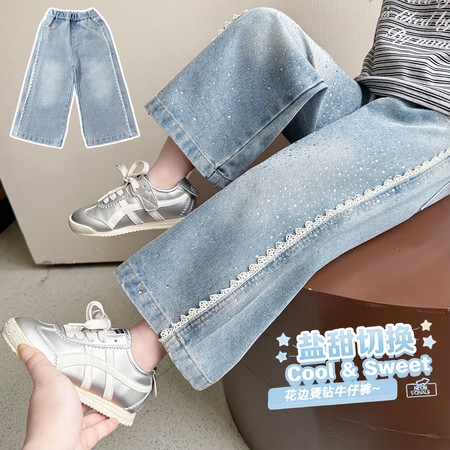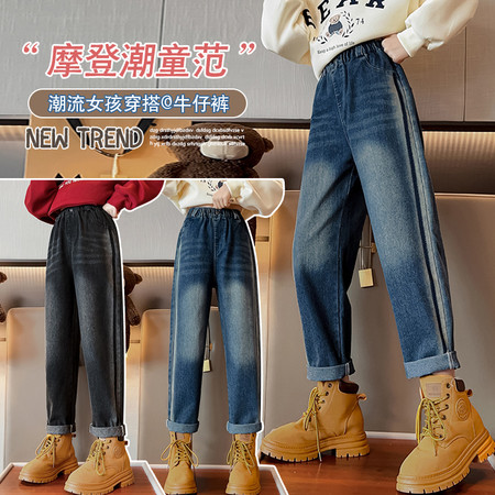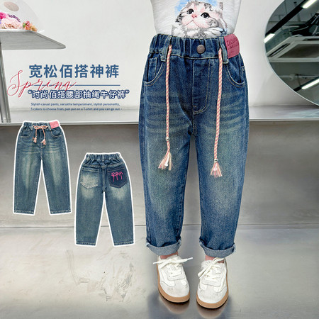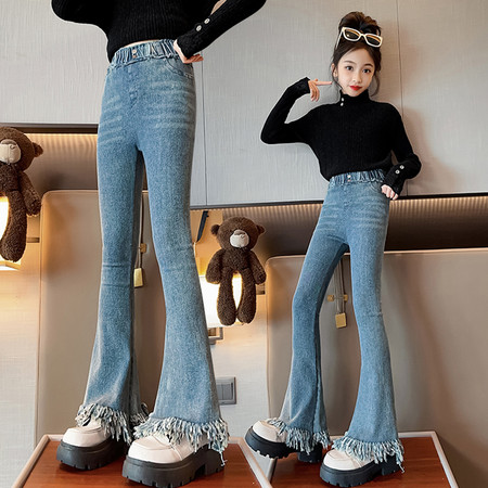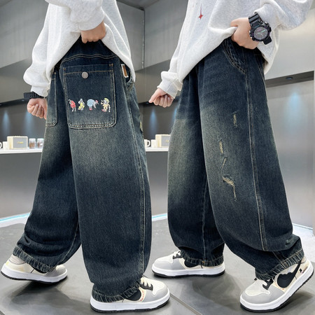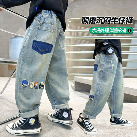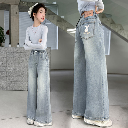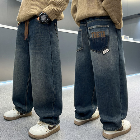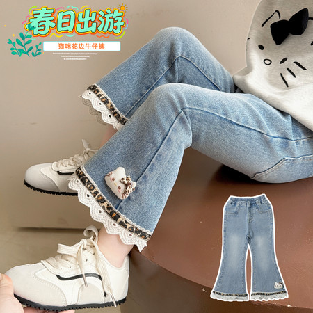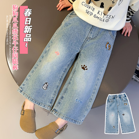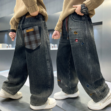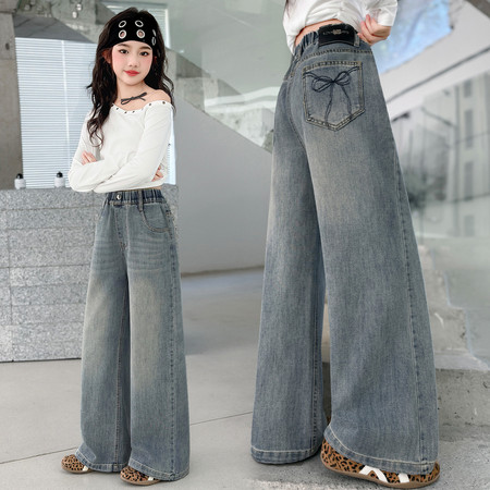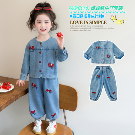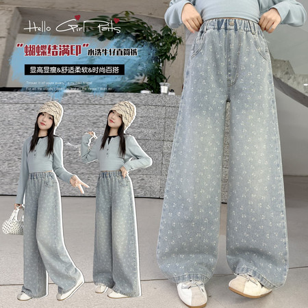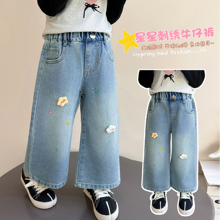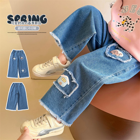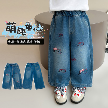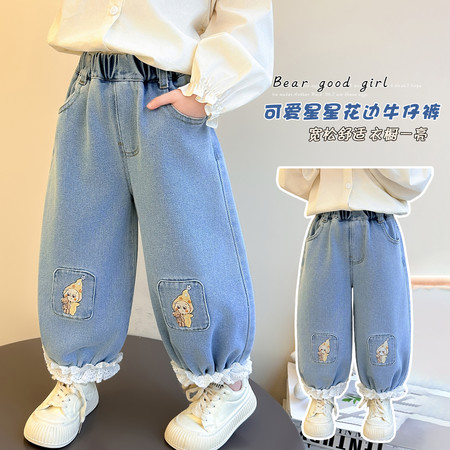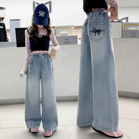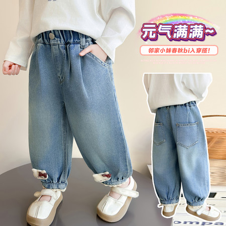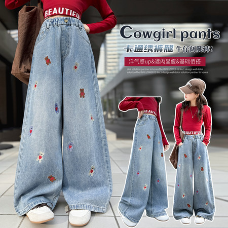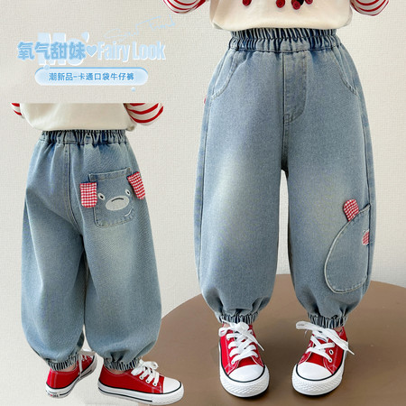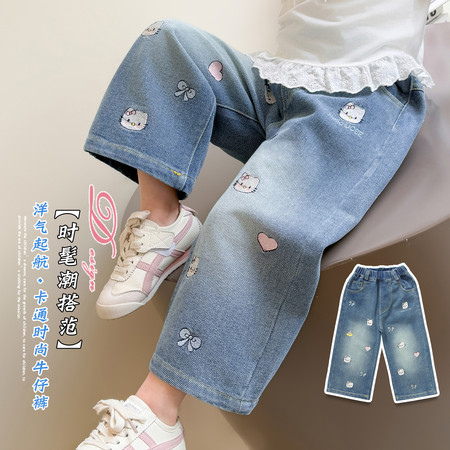 D219蝴蝶结卡通刺绣加绒牛仔裤
