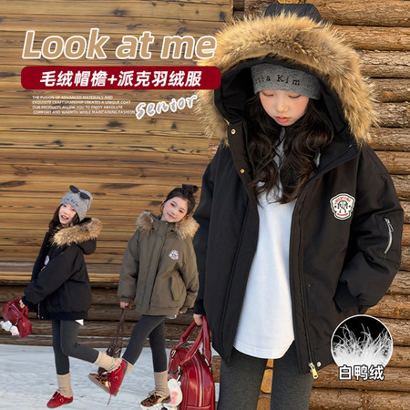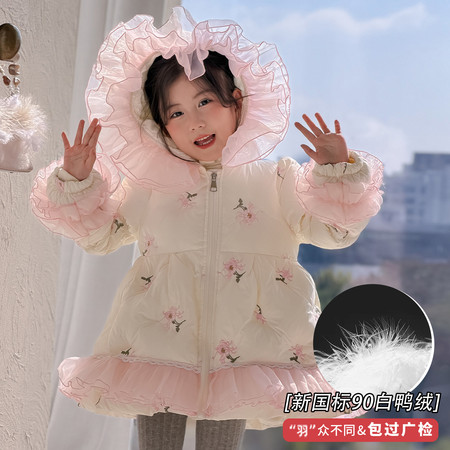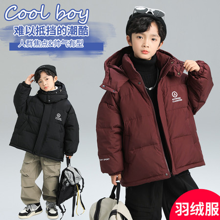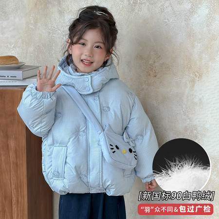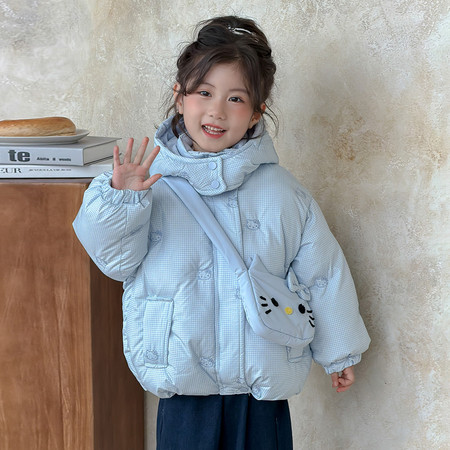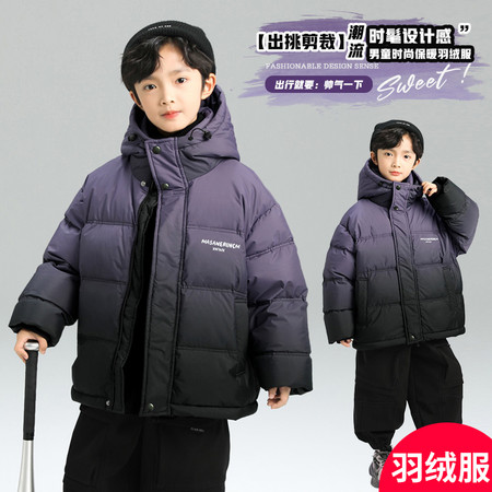 麦吉&2498拼色蝴蝶字母压花羽绒服