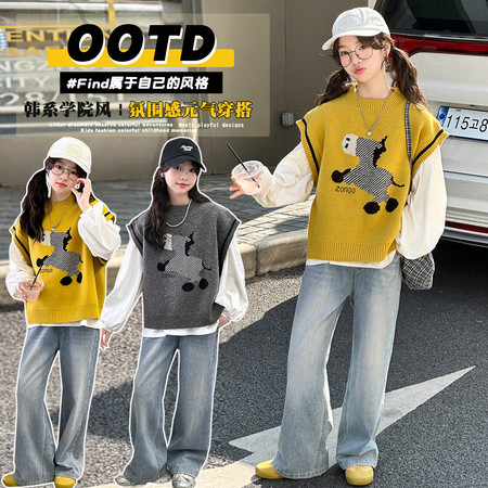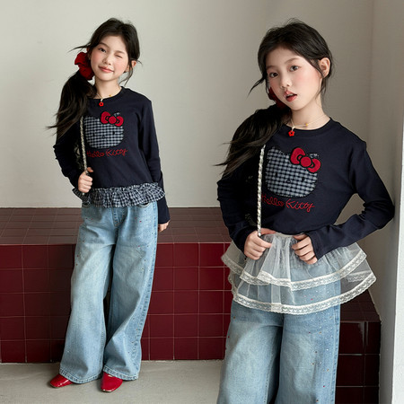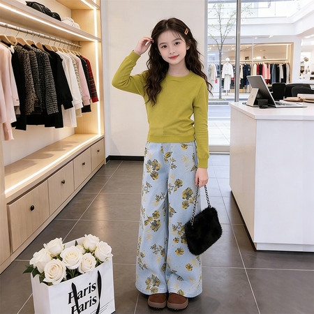 陶陶果童装&5686前面毛边喇叭裤