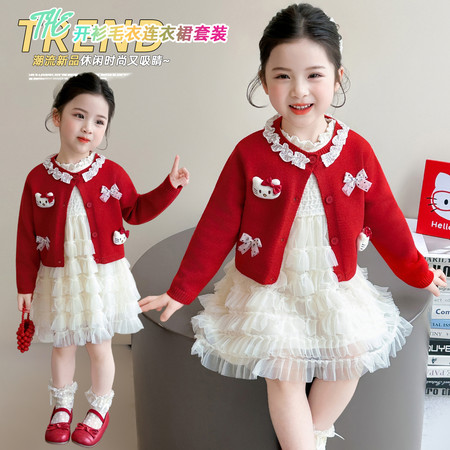 双鱼妮妮&SY-2544女童手套毛衣拜年服套装
