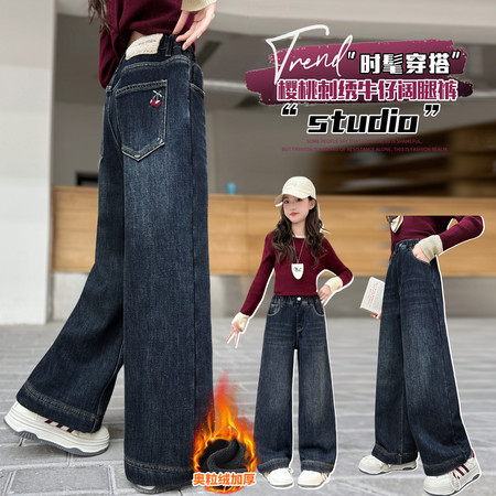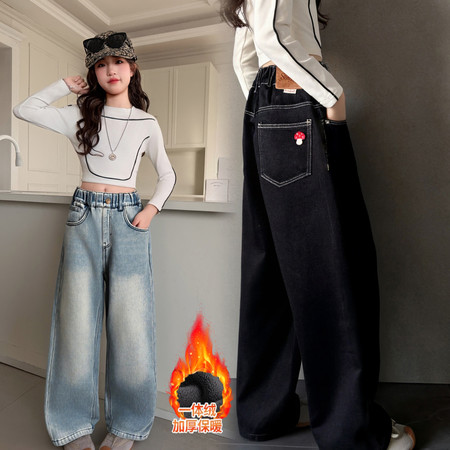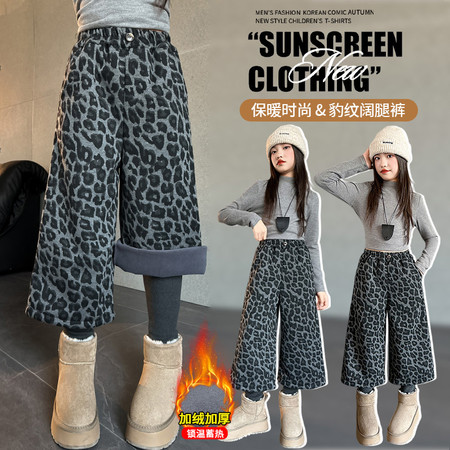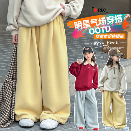 陶陶果童装&6325后袋小字母浅色加绒阔腿裤