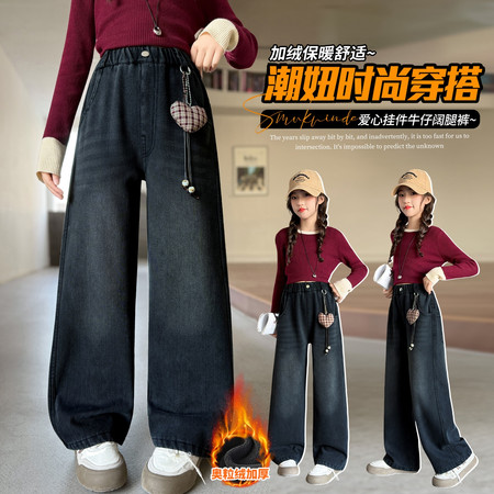 陶陶果童装&6330后袋雪花加绒阔腿裤