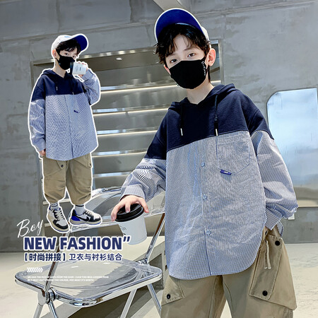 糖果小镇网供&TGXZ8325男童春秋拼接衬衫连帽卫衣