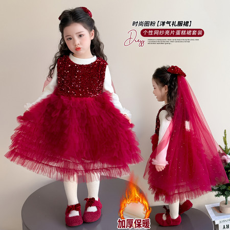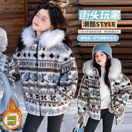 珊妮童装&1102女童冬款碎花加绒加厚派克服一套有