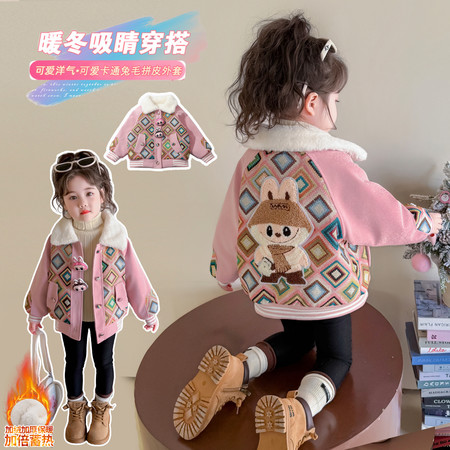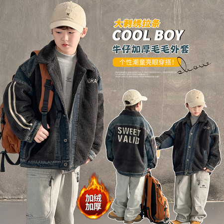 爆版熊&B78-喷色刺绣牛仔加厚毛毛外套