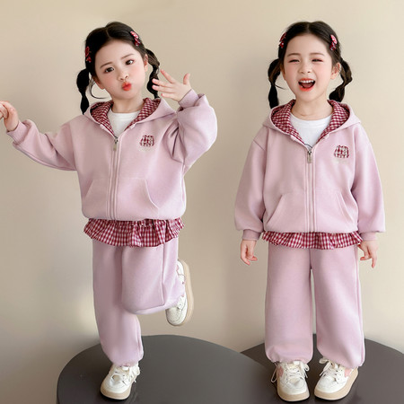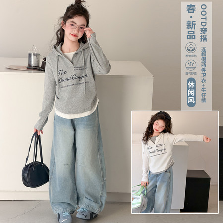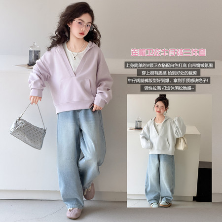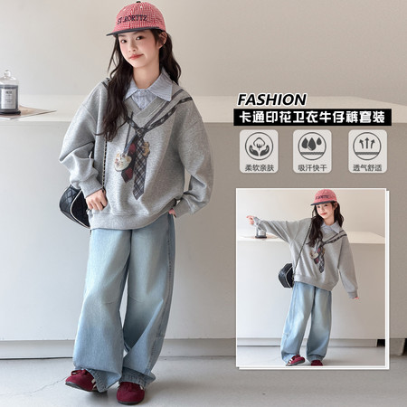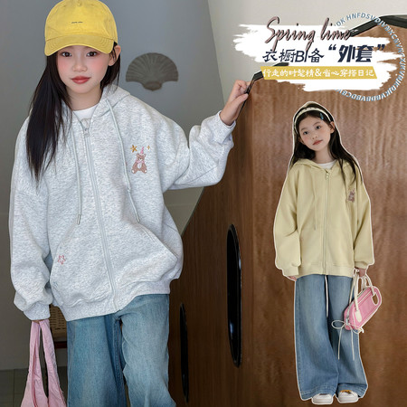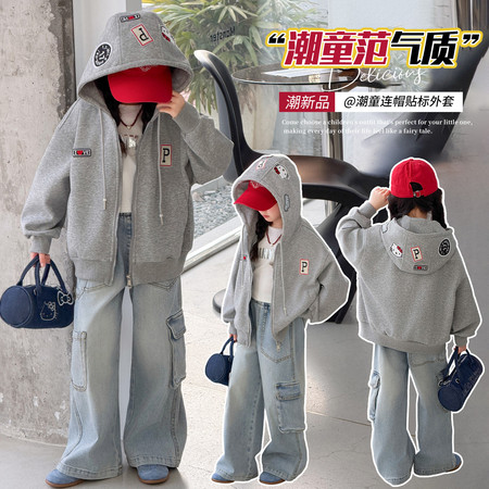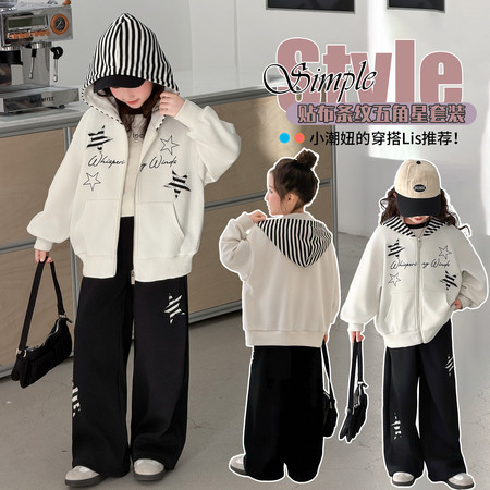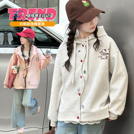 蕊蕊&R187款印花连帽开衫卫衣套装