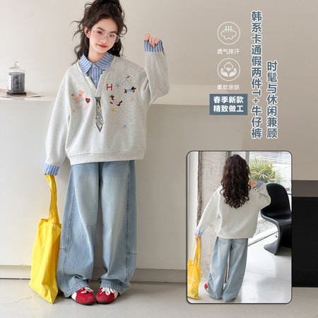 小孩潮品&卡通卫衣条纹打底裤套装