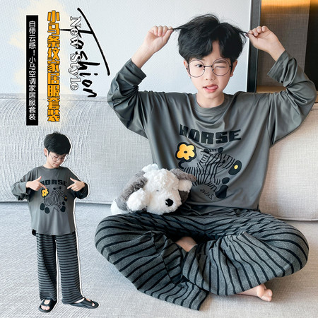 洪冠服饰&2581A开叉贴标条纹家居服睡衣套装