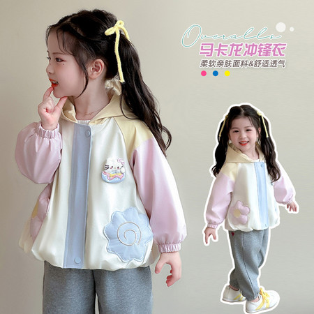 麦吉&2498拼色蝴蝶字母压花羽绒服-