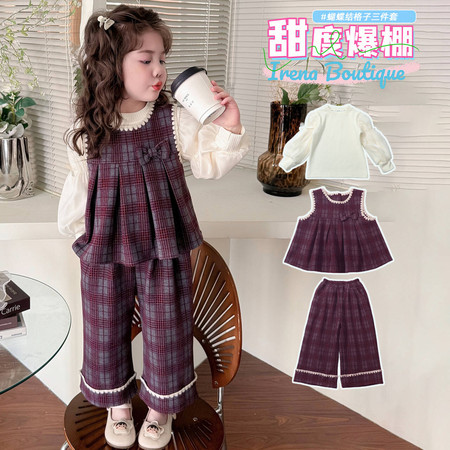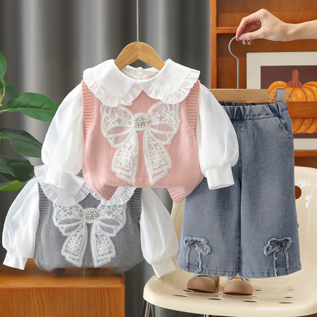五小七【原五七潮童】&XT261219蝴蝶结毛衣三件套