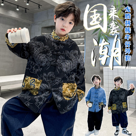 爆版熊&F302-龙腾吉祥国风牛仔外套