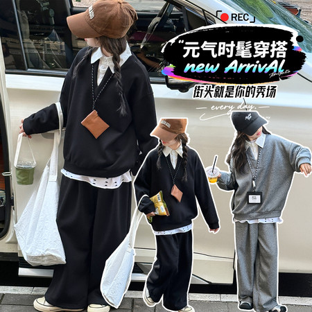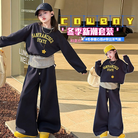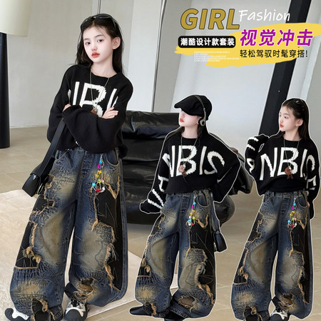 星范儿&2602美式棉纱毛衣牛仔街舞风超酷套装