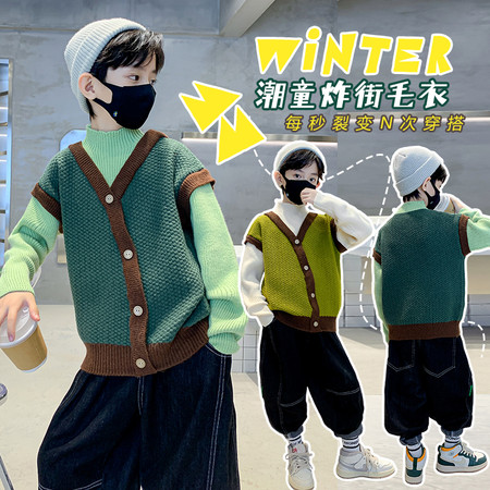 星星年华&DX07230拼色假两件套针织毛衣