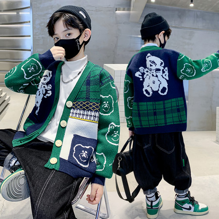 星星年华&DX07234后背小熊绿色针织开衫