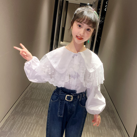 阿不童装&2607款娃娃领蕾丝衬衫套装
