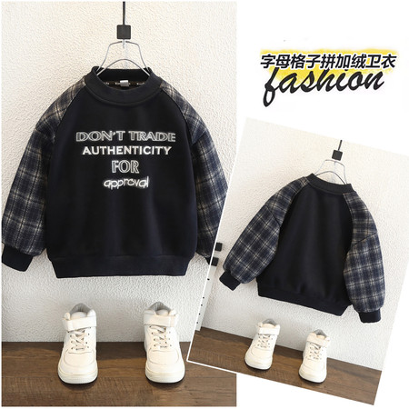 小班家&25611格子袖加绒卫衣挂拍