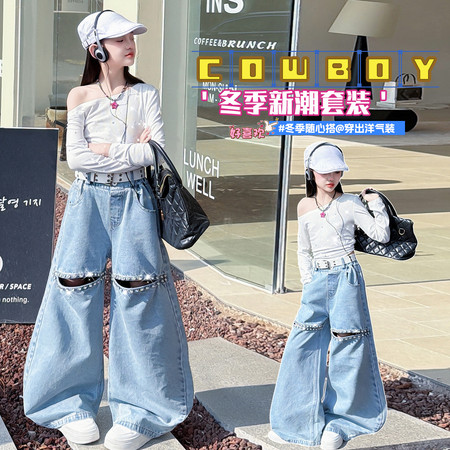 小孩潮品&镂空连衣裙套装-