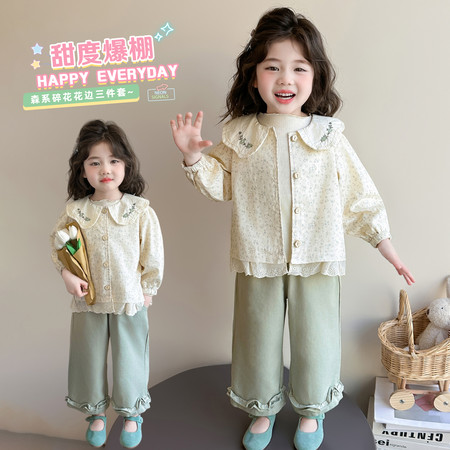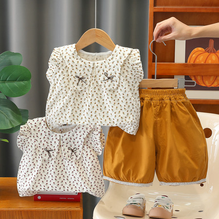 五小七【原五七潮童】&XT262208女童三朵花短袖两件套