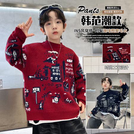 小豆町&XDD-084卡通兔毛衣连衣裙套装