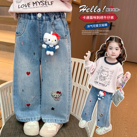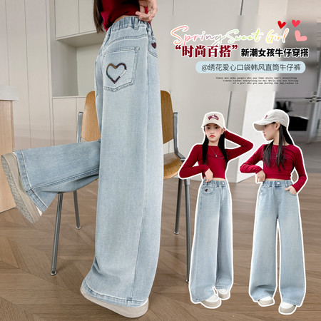 陶陶果童装&6359后袋绣爱心阔腿裤