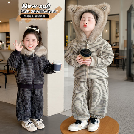 米咔精灵&2771笑脸刺绣加厚外套弯刀裤套装休闲