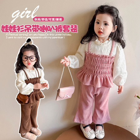 小豆町&A1151-娃娃衫吊带喇叭裤套装小模特