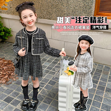 小豆町&B217亮丝小香风连衣裙套装贝拉图