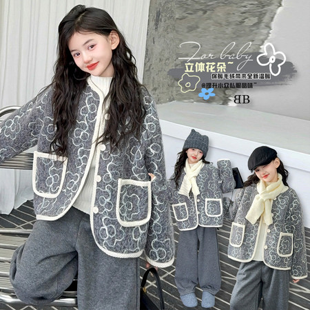 漂亮优贝童装&2909款毛线帽加厚棉衣
