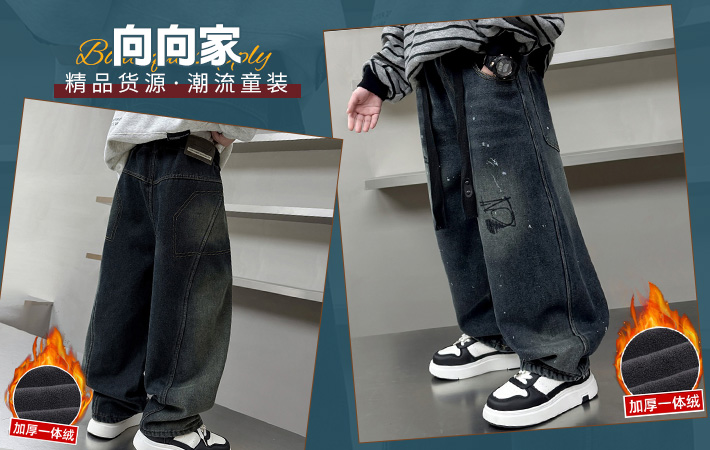¥46分销数 600+青蛙部落&D2595加绒猫耳朵拼接阔腿裤【女装爆款、品质货源]女童加绒牛仔裤中大童拼接宽松加厚阔腿裤爆【闪】