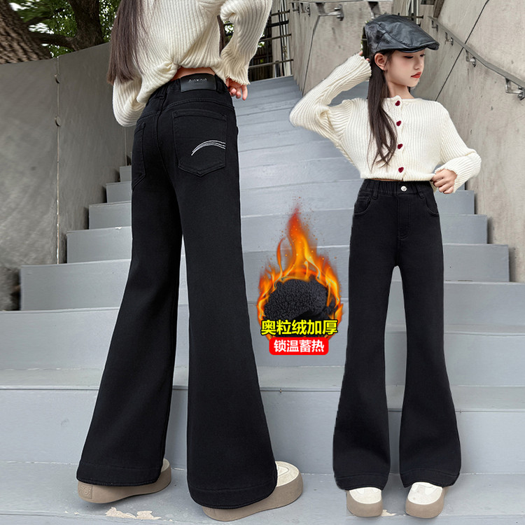 ¥43分销数 20+米酱贝贝&加绒花朵牛仔裤2025冬季女童加绒牛仔裤新【闪】