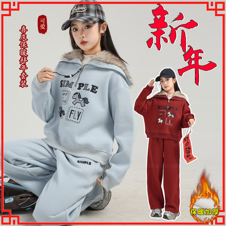 ¥40分销数 150+秋果果&红包年服卫衣-羊驼绒女童加绒冬季卫衣拜年服90-140支持店管家主推优惠大货已出