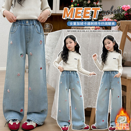 邻家果果&25169毛线领条纹加绒卫衣牛仔裤套装