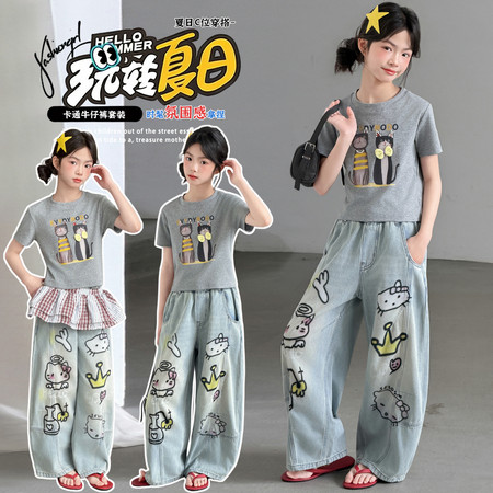绣花小马卫衣牛仔裤套装爆【闪】 -