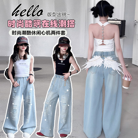 ¥27分销数 80+美丫丫&MYY26030童趣条纹T恤牛仔中裤套装夏款上新 现货闪【闪】